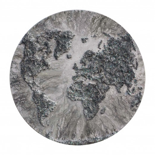 acrylic on canvas, spray paint, salt, crystal powder, spray paint